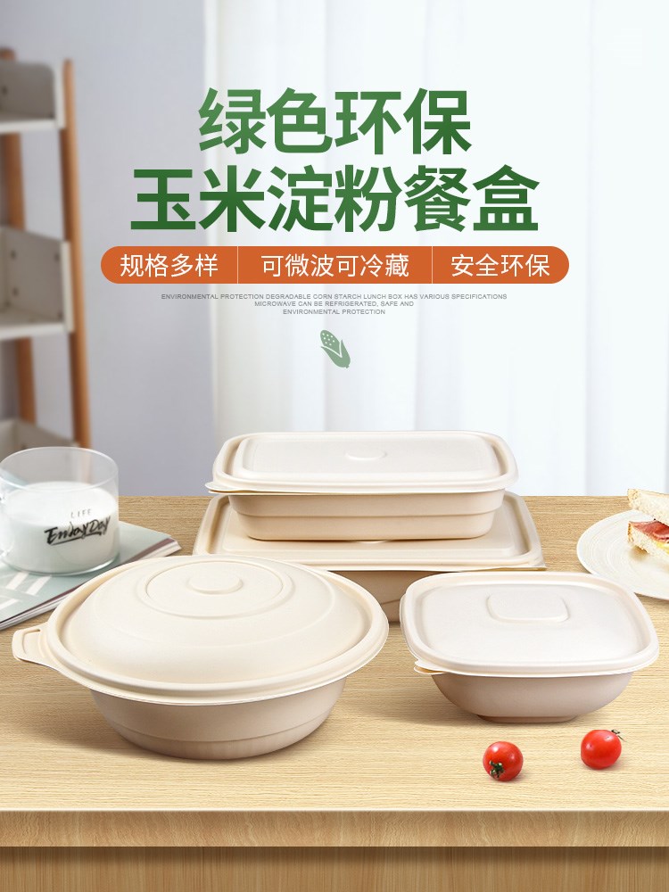 可降解餐盒一次性饭盒玉米淀粉碗环保外卖打包盒带盖便当盒
