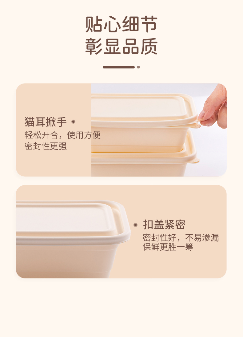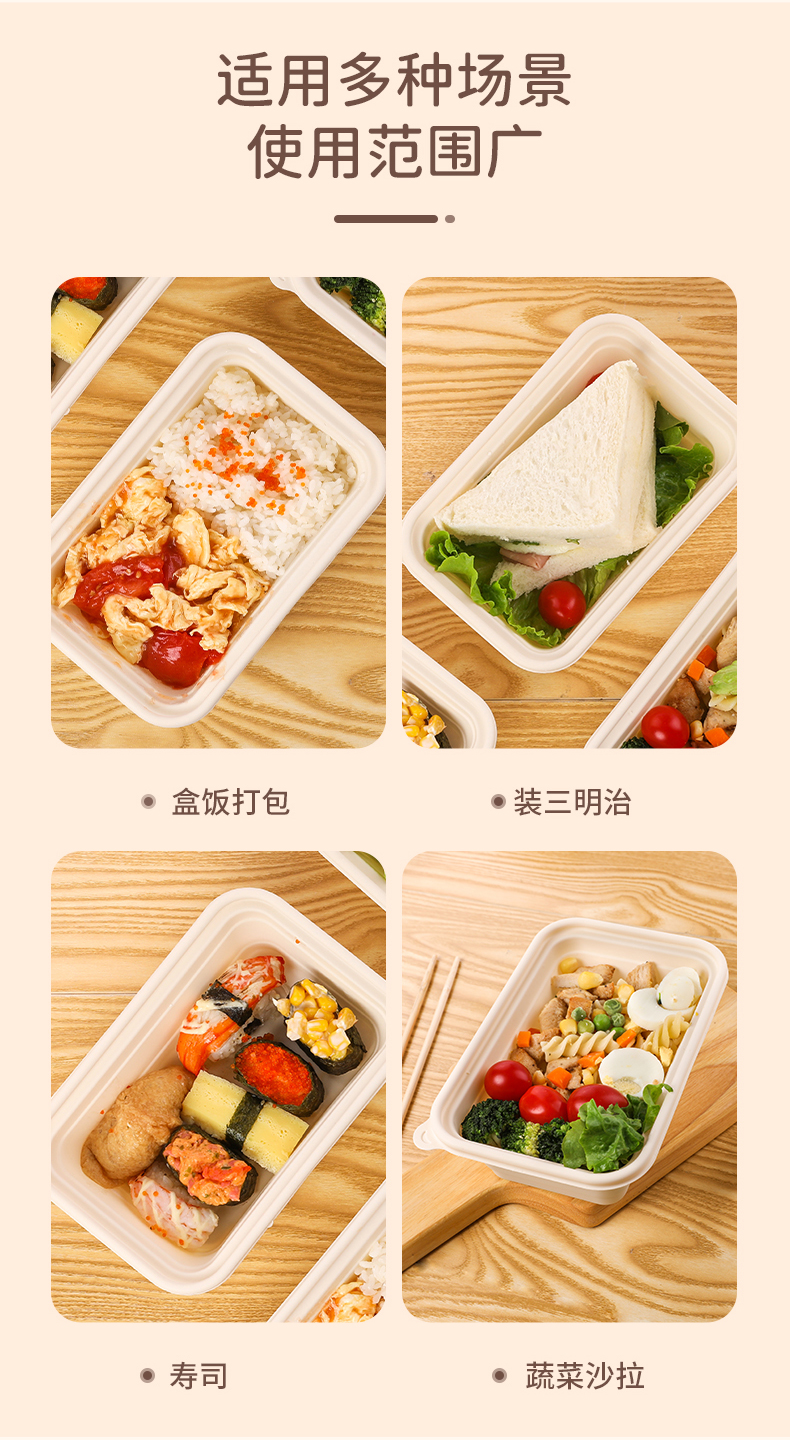 云蕾可降解餐盒一次性玉米淀粉基打包圆碗650ML带盖加厚饭盒餐厅/集体/家用