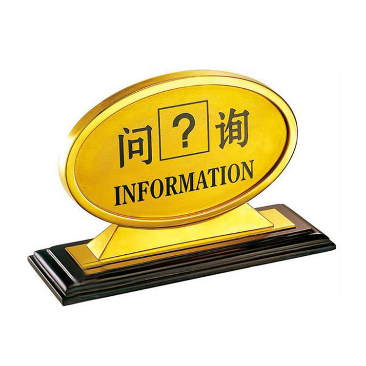P-19A酒店豪华餐厅桌面铭牌 咨询接待铭牌 酒店大门接待桌面铭牌 镜金270*100*180